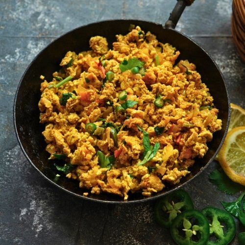 Egg Bhurji made with fresh eggs, onions, tomatoes, and spices. Soft, flavorful, and served hot for a hearty, satisfying meal anytime of the day.